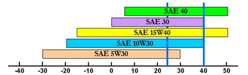 Figura 1. Clasificación SAE de Aceites Lubricantes a diferentes temperaturas de trabajo.